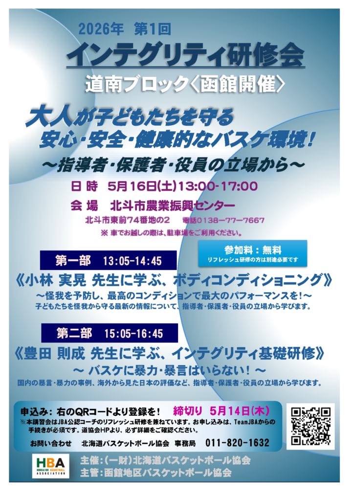2026年度第1回インテグリティ研修会【道南ブロック(函館開催)5/16実施】について、内容等について連絡いたします。 開催要項